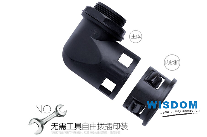 使用方法: WSD-KS-E 型軟管直角接頭是軟管的配套產(chǎn)品,可接入設(shè)備箱體上,也可以根據(jù)選用螺紋接入進(jìn)出口為內(nèi)螺紋的電動(dòng)設(shè)備上,只需軟管插入接口即可。